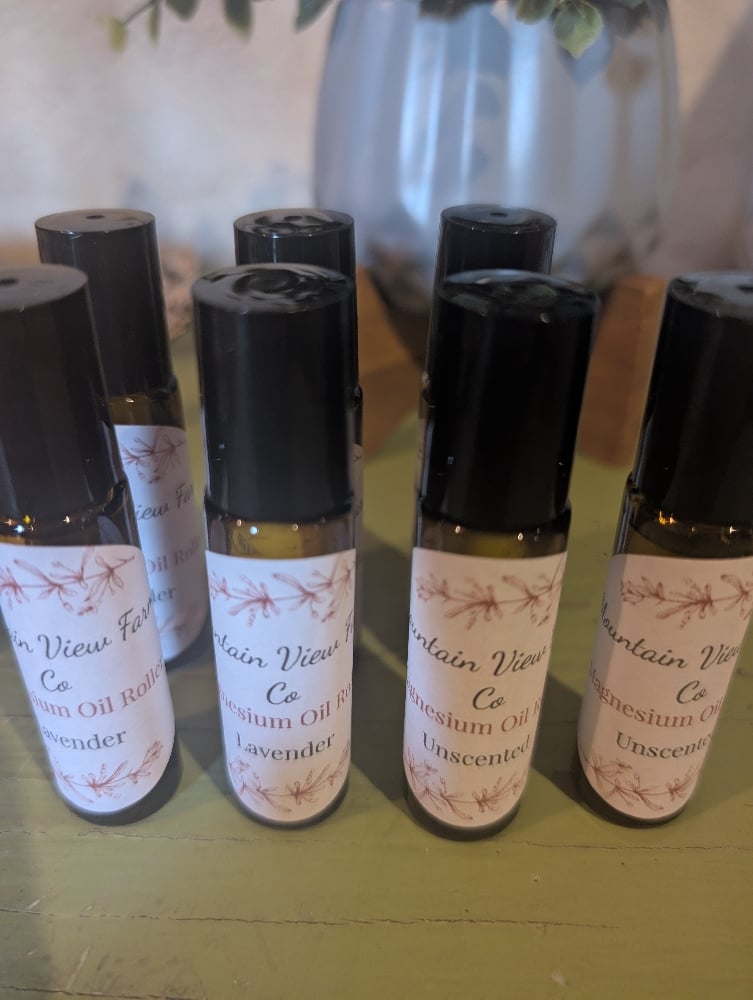 Magnesium oil in a convenient roller bottle for concentrated application wherever you need it. Comes in lavender and unscented.